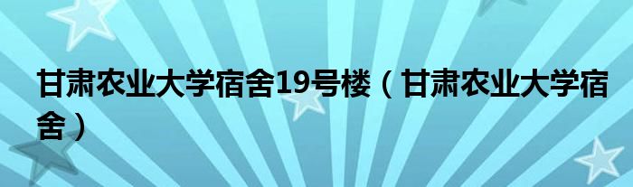 大家好,小晋来为大家解答以下问题,关于甘肃农业大学宿舍19号楼,甘肃农业大学宿舍很多人还不知道,今天让我们一起来看看吧!