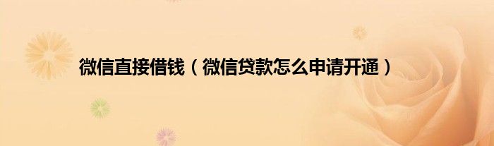 大家好,综合小编来为大家讲解下微信直接借钱,微信贷款怎么申请开通这个很多人还不知道,现在让我们一起来看看吧!