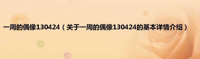 本文关于一周的偶像130424的基本详情介绍就讲解完毕,希望对大家有所帮助。