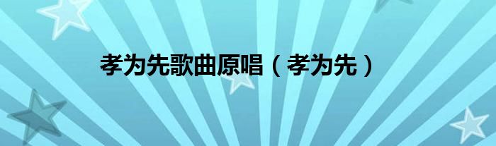 孝为先歌曲原唱(孝为先)