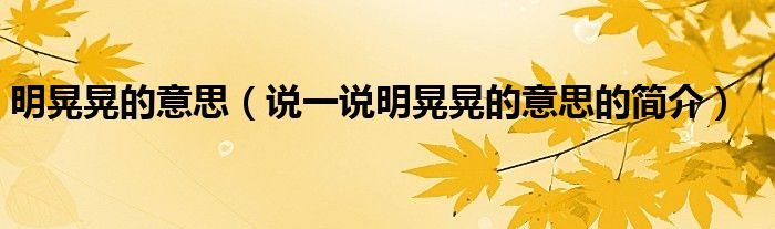 明晃晃的意思(说一说明晃晃的意思的简介)
