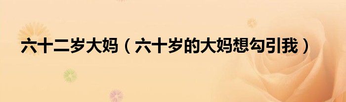 关于六十二岁大妈,六十岁的大妈想勾引我这个很多人还不知道,今天菲菲来为大家解答以上的问题,现在让我们一起来看看吧!