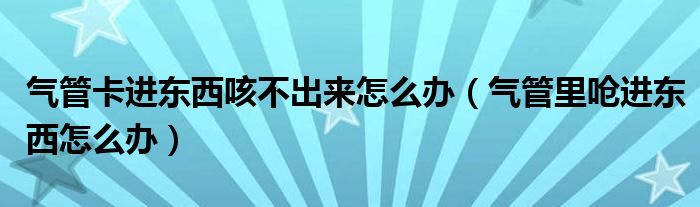 大家好,乐天来为大家解答以下的问题,气管卡进东西咳不出来怎么办,气管里呛进东西怎么办很多人还不知道,现在让我们一起来看看吧!