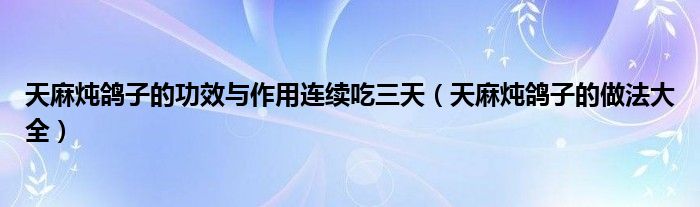 天麻炖鸽子的功效与作用连续吃三天(天麻炖鸽子的做法大全)
