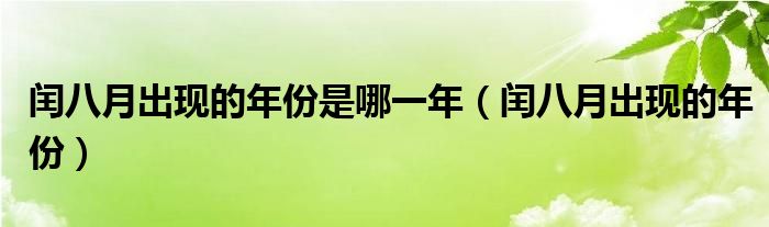 闰八月出现的年份是哪一年(闰八月出现的年份)