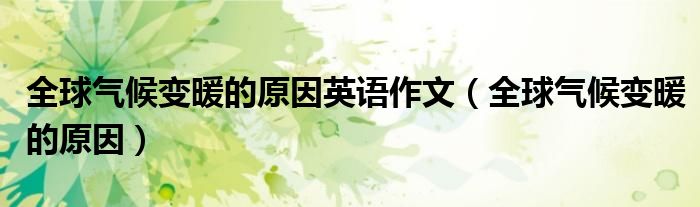 关于全球气候变暖的原因英语作文,全球气候变暖的原因这个很多人还不知道,今天菲菲来为大家解答以上的问题,现在让我们一起来看看吧!