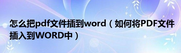 关于怎么把pdf文件插到word,如何将PDF文件插入到WORD中这个很多人还不知道,今天菲菲来为大家解答以上的问题,现在让我们一起来看看吧!