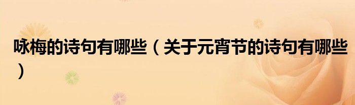大家好,乐儿来为大家解答以下问题,咏梅的诗句有哪些,关于元宵节的诗句有哪些很多人还不知道,现在让我们一起来看看吧!