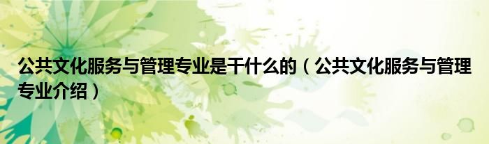 关于公共文化服务与管理专业是干什么的,公共文化服务与管理专业介绍这个很多人还不知道,今天菲菲来为大家解答以上的问题,现在让我们一起来看看吧!
