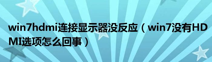 关于win7hdmi连接显示器没反应,win7没有HDMI选项怎么回事这个很多人还不知道,今天菲菲来为大家解答以上的问题,现在让我们一起来看看吧!