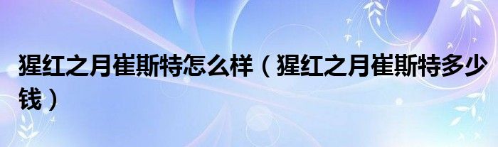 关于猩红之月崔斯特怎么样,猩红之月崔斯特多少钱这个很多人还不知道,今天菲菲来为大家解答以上的问题,现在让我们一起来看看吧!