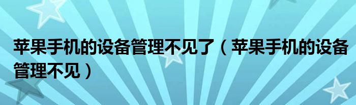 苹果手机的设备管理不见了(苹果手机的设备管理不见)
