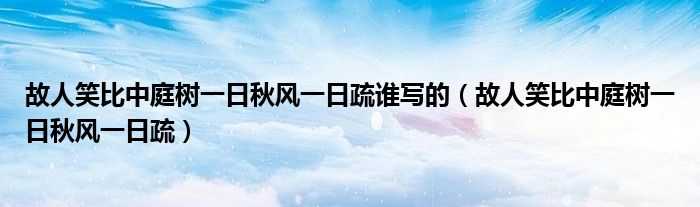 关于故人笑比中庭树一日秋风一日疏谁写的,故人笑比中庭树一日秋风一日疏这个很多人还不知道,今天菲菲来为大家解答以上的问题,现在让我们一起来看看吧!