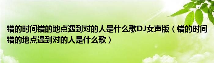 大家好,小联来为大家解答以上的问题。错的时间错的地点遇到对的人是什么歌DJ女声版,错的时间错的地点遇到对的人是什么歌这个很多人还不知道,现在让我们一起来看看吧!