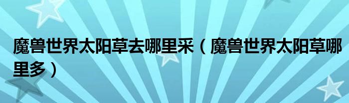 魔兽世界太阳草去哪里采(魔兽世界太阳草哪里多)