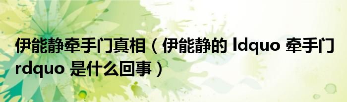大家好,小联来为大家解答以上的问题。伊能静牵手门真相,伊能静的 ldquo 牵手门 rdquo 是什么回事这个很多人还不知道,现在让我们一起来看看吧!