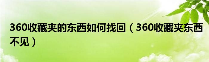大家好,小华来为大家解答以上的问题。360收藏夹的东西如何找回,360收藏夹东西不见这个很多人还不知道,现在让我们一起来看看吧!