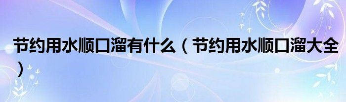 节约用水顺口溜有什么(节约用水顺口溜大全)