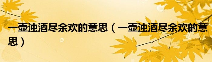 一壶浊酒尽余欢的意思(一壶浊酒尽余欢的意思)