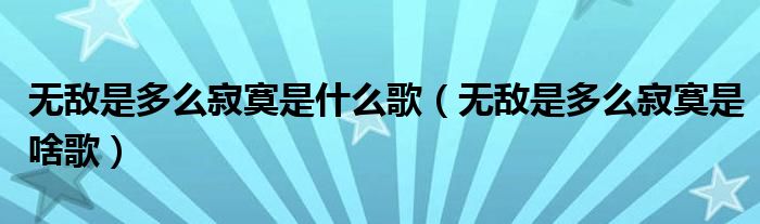 无敌是多么寂寞是什么歌(无敌是多么寂寞是啥歌)
