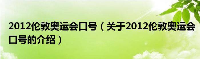 大家好,小夏来为大家解答以上的问题。2012伦敦奥运会口号,关于2012伦敦奥运会口号的介绍很多人还不知道,现在让我们一起来看看吧!