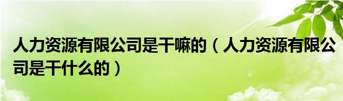 人力资源有限公司是干嘛的(人力资源有限公司是干什么的)