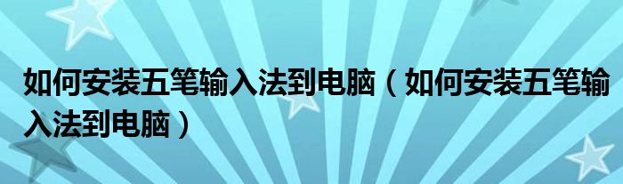 如何安装五笔输入法到电脑(如何安装五笔输入法到电脑)