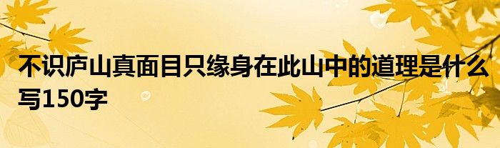 不识庐山真面目只缘身在此山中的道理是什么写150字