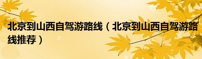 北京到山西自驾游路线(北京到山西自驾游路线推荐)