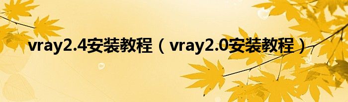 今天小饼为大家解答以下问题,关于vray2.4安装教程,vray2.0安装教程很多人还不知道,现在让我们一起来看看吧!