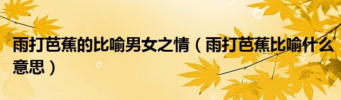 大家好,我是小科,我来为大家解答以上问题。雨打芭蕉的比喻男女之情,雨打芭蕉比喻什么意思很多人还不知道,现在让我们一起来看看吧!