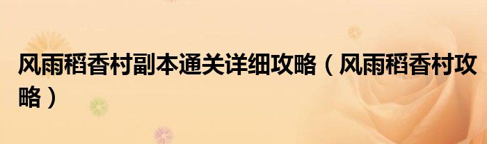 风雨稻香村副本通关详细攻略(风雨稻香村攻略)