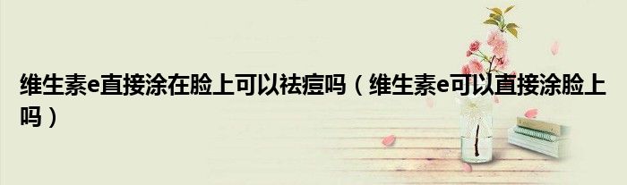 大家好,乐天来为大家解答以下的问题,维生素e直接涂在脸上可以祛痘吗,维生素e可以直接涂脸上吗很多人还不知道,现在让我们一起来看看吧!