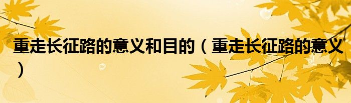 最佳答案大家好,我是小科,我来为大家解答以上问题。重走长征路的意义和目的,重走长征路的意义很多人还不知道,现在让我们一起来看看吧!1、意义是人定的。2、你要怎么定就怎么定 不是有人重走长征路。3、来计算是否是 二万五千里吗.验证长征的行程长度。本文到此讲解完毕了,希望对大家有帮助。