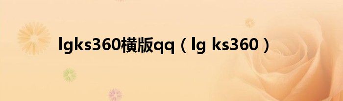 大家好,来宝来为大家解答以下问题,lgks360横版qq,lg ks360很多人还不知道,今天让我们一起来看看吧!