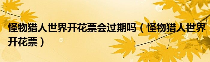 大家好,小晋来为大家解答以下问题,关于怪物猎人世界开花票会过期吗,怪物猎人世界开花票很多人还不知道,今天让我们一起来看看吧!