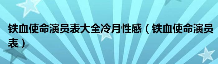 关于铁血使命演员表大全冷月性感,铁血使命演员表这个很多人还不知道,今天菲菲来为大家解答以上的问题,现在让我们一起来看看吧!