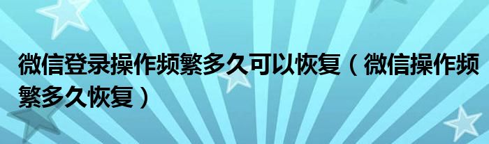 大家好,小晋来为大家解答以下问题,关于微信登录操作频繁多久可以恢复,微信操作频繁多久恢复很多人还不知道,今天让我们一起来看看吧!
