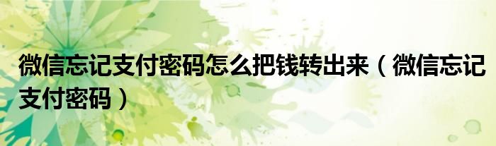 大家好,小晋来为大家解答以下问题,关于微信忘记支付密码怎么把钱转出来,微信忘记支付密码很多人还不知道,今天让我们一起来看看吧!