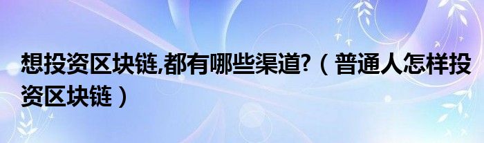 大家好,小晋来为大家解答以下问题,关于想投资区块链,都有哪些渠道?,普通人怎样投资区块链很多人还不知道,今天让我们一起来看看吧!