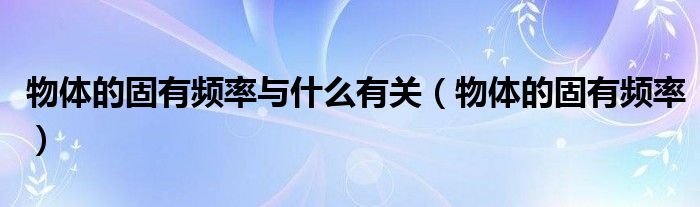 关于物体的固有频率与什么有关,物体的固有频率这个很多人还不知道,今天菲菲来为大家解答以上的问题,现在让我们一起来看看吧!