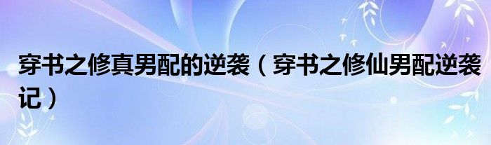 大家好,小晋来为大家解答以下问题,关于穿书之修真男配的逆袭,穿书之修仙男配逆袭记很多人还不知道,今天让我们一起来看看吧!