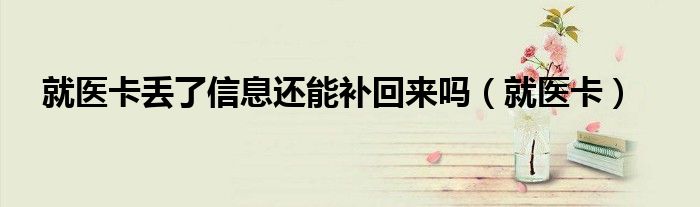 大家好,来宝来为大家解答以下问题,就医卡丢了信息还能补回来吗,就医卡很多人还不知道,今天让我们一起来看看吧!