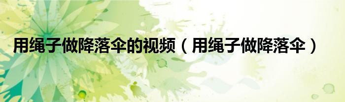 大家好,小晋来为大家解答以下问题,关于用绳子做降落伞的视频,用绳子做降落伞很多人还不知道,今天让我们一起来看看吧!