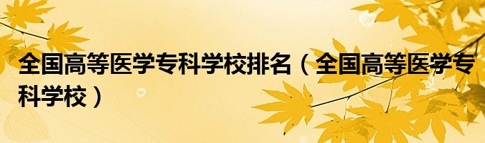 全国高等医学专科学校排名(全国高等医学专科学校)