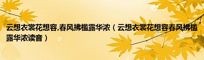 关于云想衣裳花想容,春风拂槛露华浓,云想衣裳花想容春风拂槛露华浓读音这个很多人还不知道,今天菲菲来为大家解答以上的问题,现在让我们一起来看看吧!
