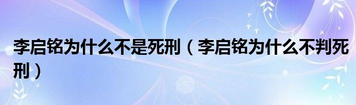 李启铭为什么不是死刑(李启铭为什么不判死刑)