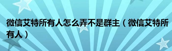 微信艾特所有人怎么弄不是群主(微信艾特所有人)