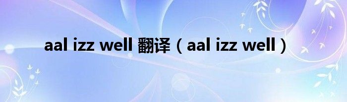 关于aal izz well 翻译,aal izz well这个很多人还不知道,今天菲菲来为大家解答以上的问题,现在让我们一起来看看吧!