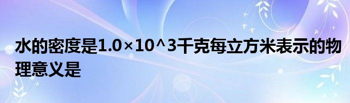 关于水的密度是1.0×10^3千克每立方米表示的物理意义是这个很多人还不知道,今天菲菲来为大家解答以上的问题,现在让我们一起来看看吧!